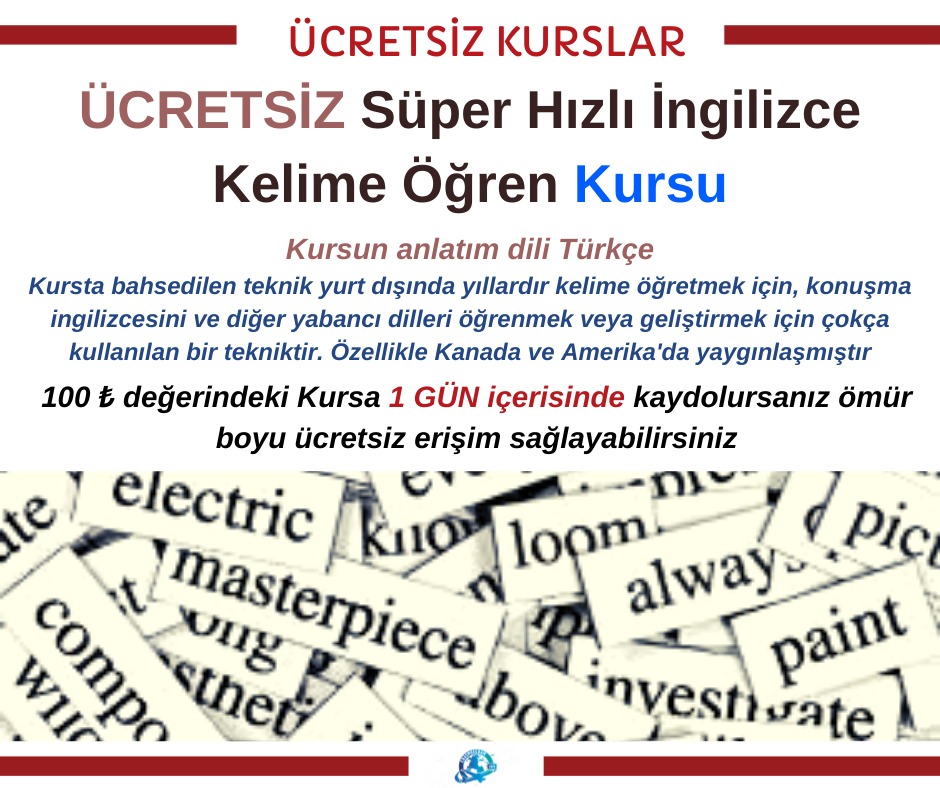 Bu kurs ile ingilizce kelimeleri öğrenebileceksiniz.