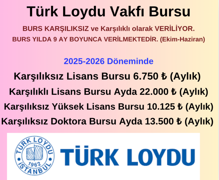 You are at:Home»Eğitim & Burslar»Türk Loydu Vakfı Burs Duyurusu