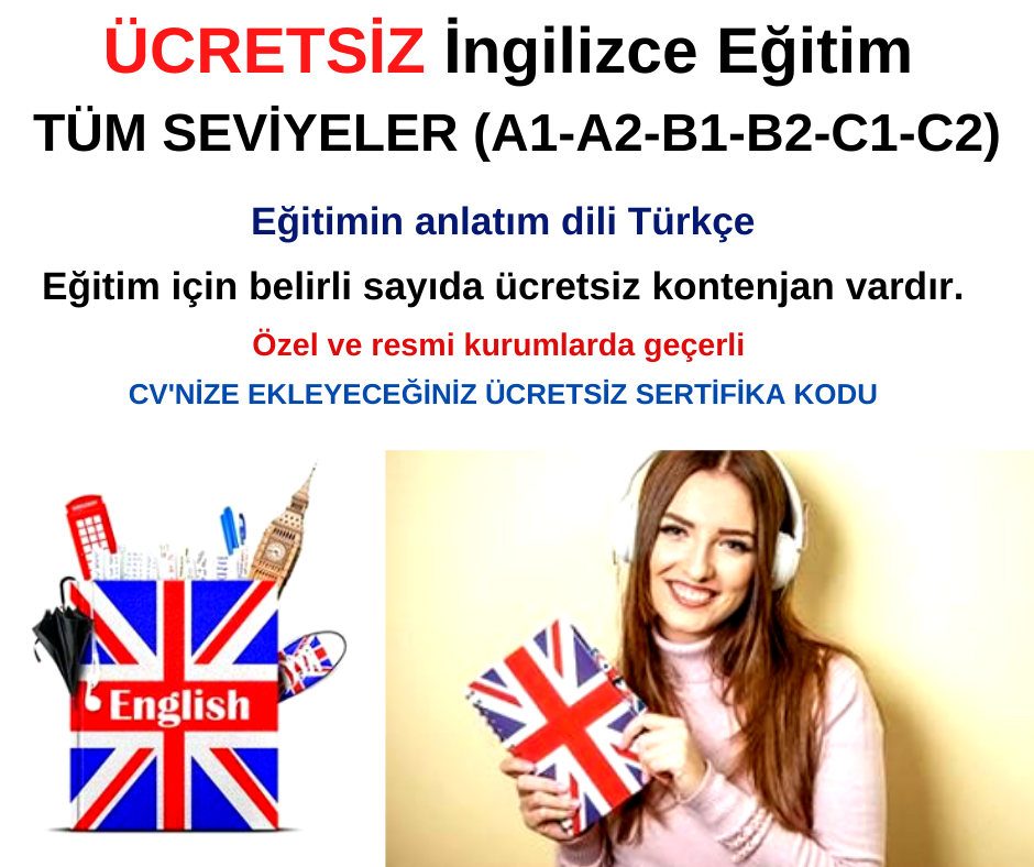 Eğitimin konu başlıklarına erişmek ve İngilizce B1-B2 kursuna ücretsiz kaydolmak için ücretsiz kontenjan dolmuştur. Ücretsiz ingilizce kurslar için ücretsiz kurslar kategorimizden erişebilirsiniz.