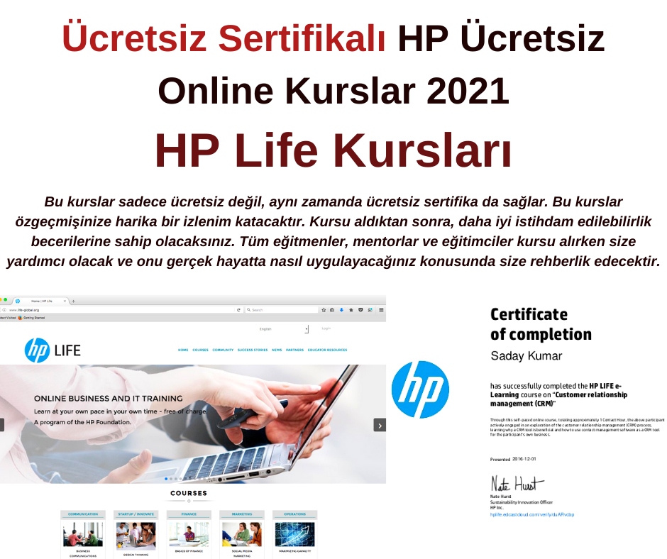 Evinizden uluslararası eğitimi deneyimlemeye fırsatı elde edin. Evet, doğru duydunuz! Ücretsiz Sertifikalı HP Ücretsiz Çevrimiçi Kurslar 2021