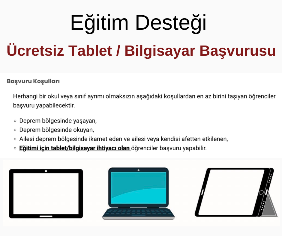 Eğitimi için tablet/bilgisayar ihtiyacı olan öğrenciler başvurabilir.