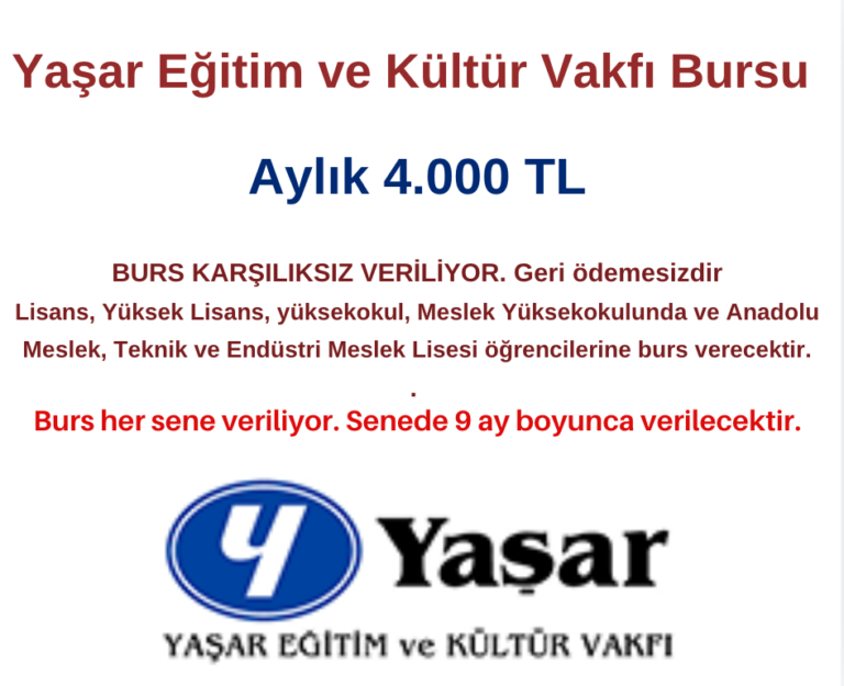Yaşar Eğitim ve Kültür Vakfının yaptığı açıklamasında Yaşar Eğitim ve Kültür Vakfı üniversitelerde yüksek lisans, lisans, yüksekokul, Meslek Yüksekokulunda ve Anadolu Meslek, Teknik ve Endüstri Meslek Lisesi öğrencilerine burs verecektir.