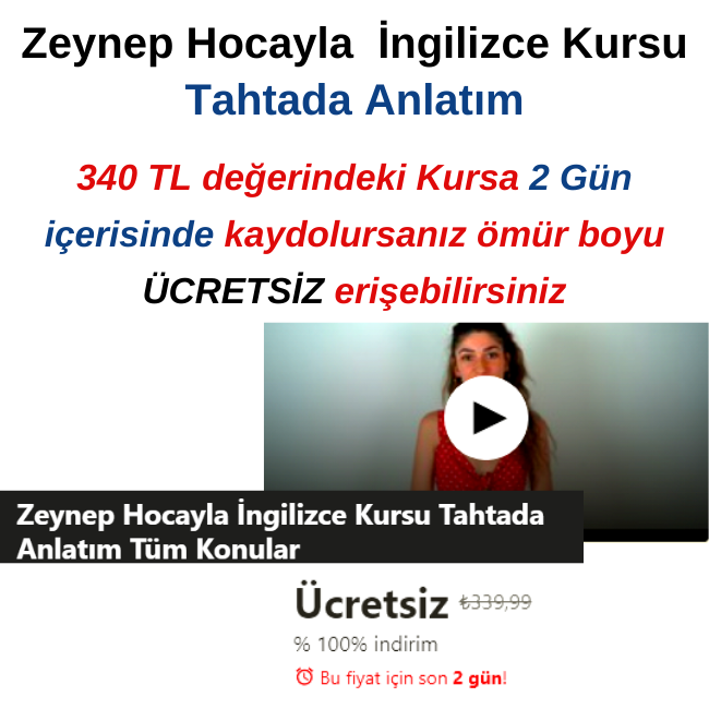 340 ₺ değerindeki kurs ; 2 gün içinde kaydolduğunuz takdirde ömür boyu kullanacağınız şekilde ücretsizdir